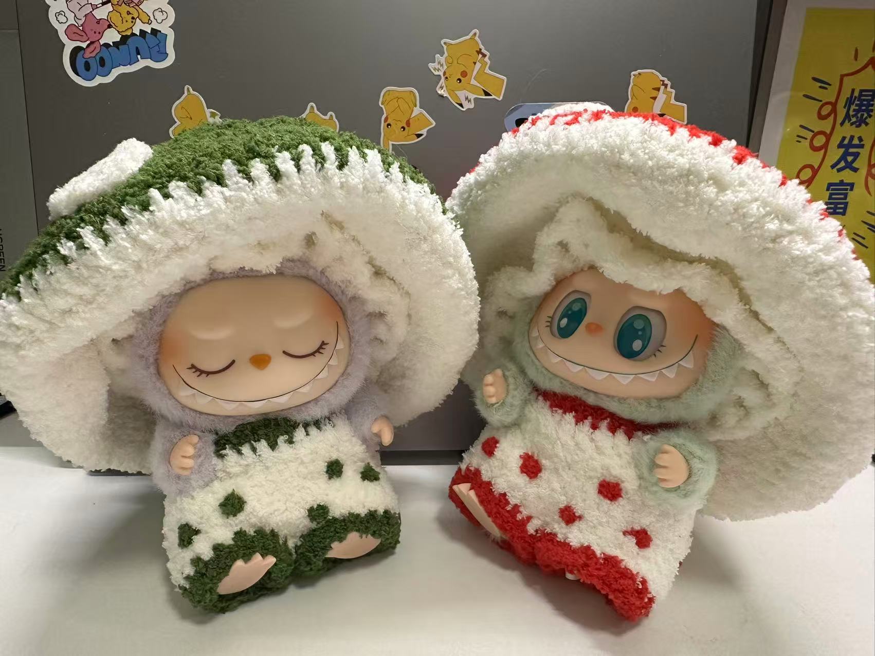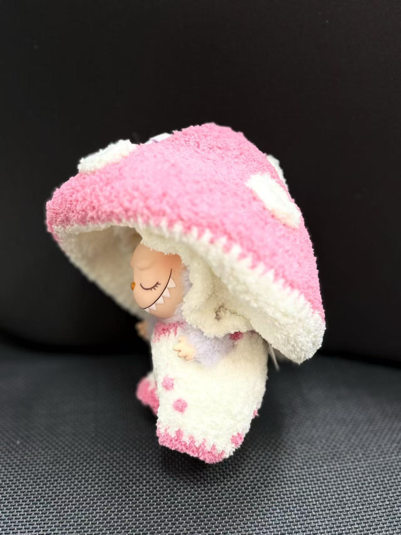 A cozy red-and-white mushroom outfit designed for 17cm art dolls.